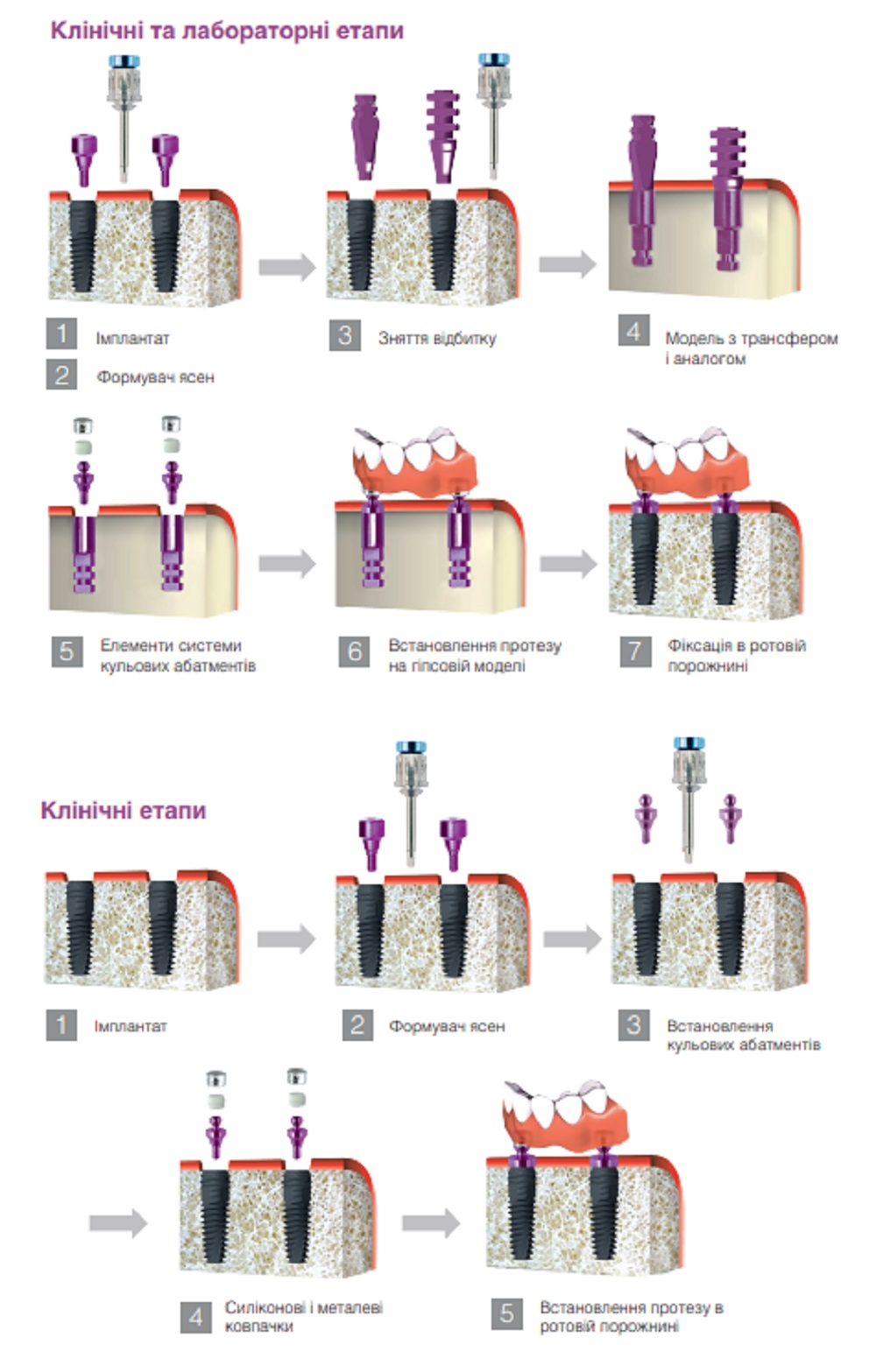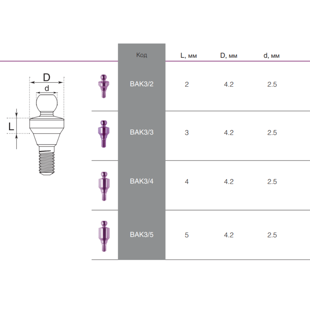 Куляста супраструктура - довжиною 1, 2, 3, 4 мм, використовується для виготовлення протезу, що спирається на м`які тканини та фіксується на дентальні імплантати